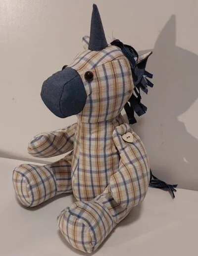 Handmade Soft Animals made from a loved ones clothing, blankets or other fabrics.